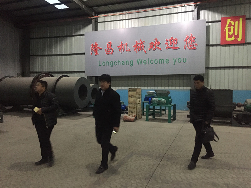 河南陳總,王總到我廠考察新型電熱烘干機(jī),訂購了豹牌四臺組對輥擠壓造粒機(jī)設(shè)備生產(chǎn)線