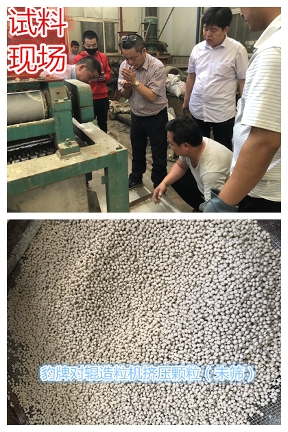 陜西客戶考察新型豹牌對輥擠壓造粒機并現(xiàn)場試料@對輥模具選豹牌