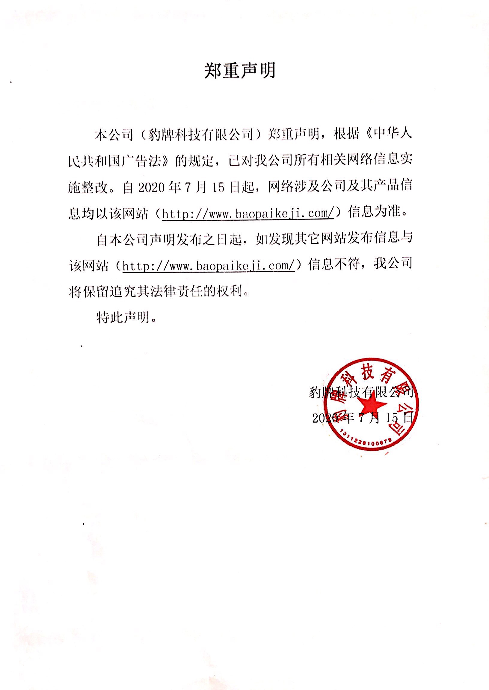 豹牌科技有限公司對相關(guān)網(wǎng)絡(luò)信息實(shí)施整改的鄭重聲明